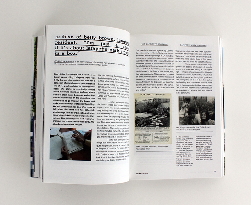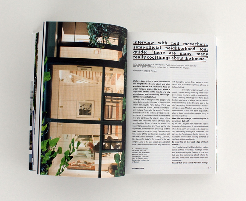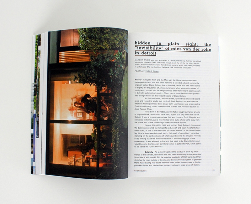 Thanks for the View, Mr. Mies (2012: Metropolis Books) illustrates life in the Lafayette Park neighborhood of downtown Detroit, home to the largest collection of Mies van der Rohe-designed buildings in the world. It was edited, authored and designed with Lana Cavar and Natasha Chandani. We focus our attention on the community of people who live in Mies's buildings and attempt to open up a discussion between architecture connoisseurs and architecture users.